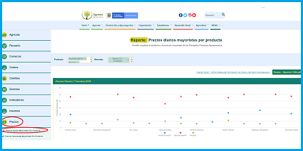 Marina: Como puede observar, aquí nos da enlace al módulo de estadísticas, en la categoría de precios, en el reporte “precios diarios mayoristas por productos”